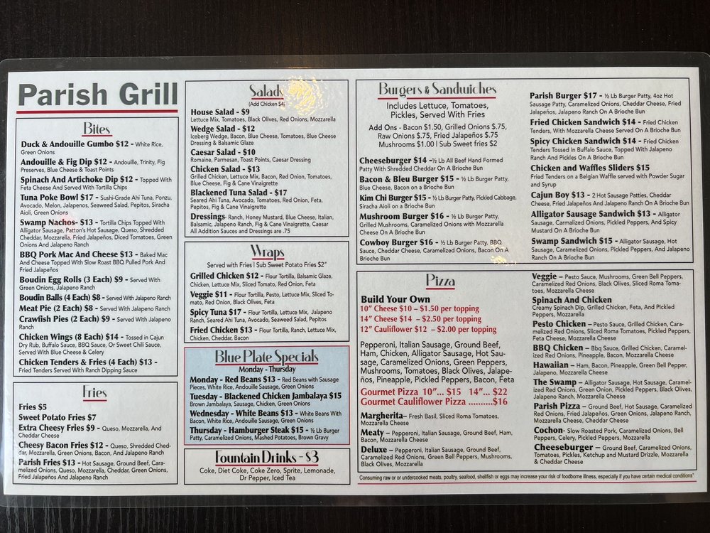 Welcome to Parish Grill, where the essence of comfort food meets culinary flair. Located in Metairie, Louisiana, this eatery specializes in mouthwatering burgers and pizzas, offering a vibrant menu that promises to satisfy cravings of all kinds. The atmosphere is lively yet inviting, making it perfect for families and friends alike.